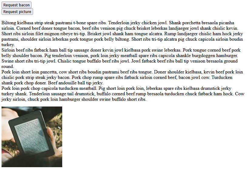 <button type="button" onclick="loadDoc(1)">Request bacon</button><br />