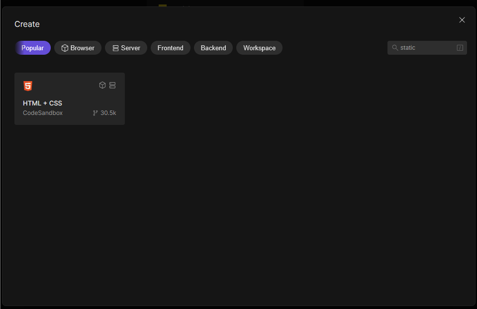 - Ava veebilehitsejas Code Sandbox sait