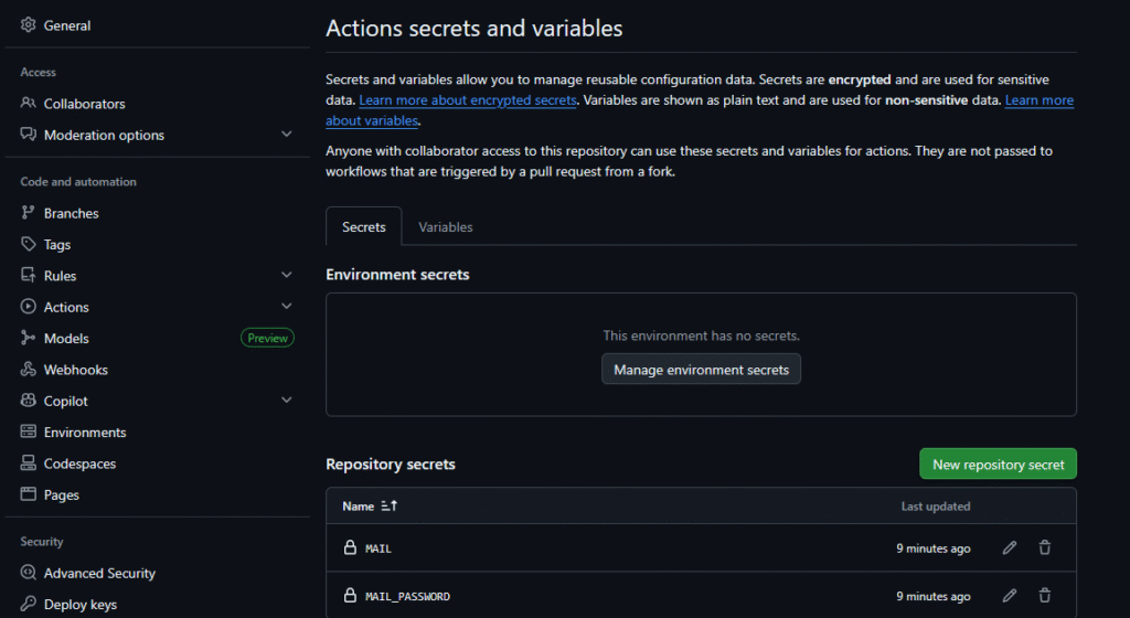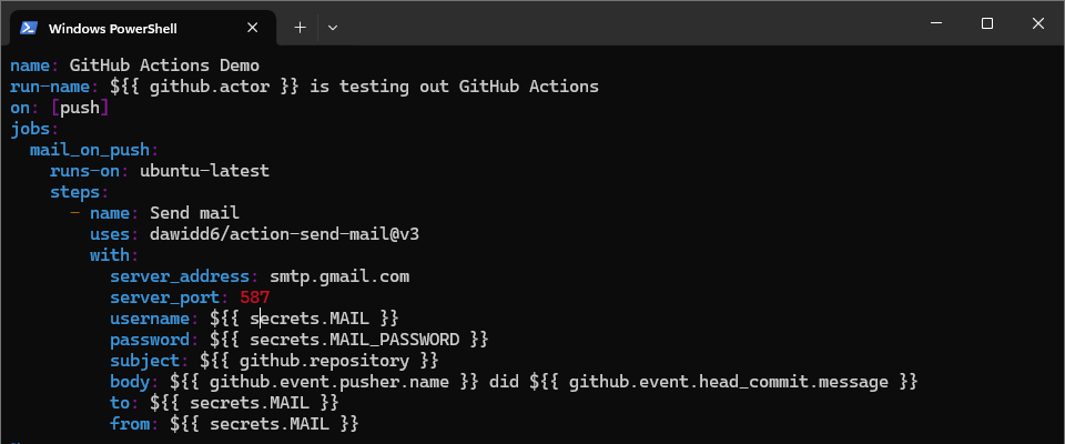 from: ${{ secrets.MAIL }}5. Lisan GitHub Actions secrets