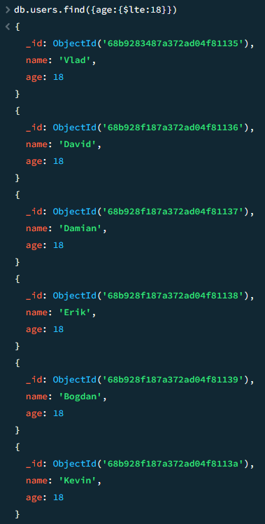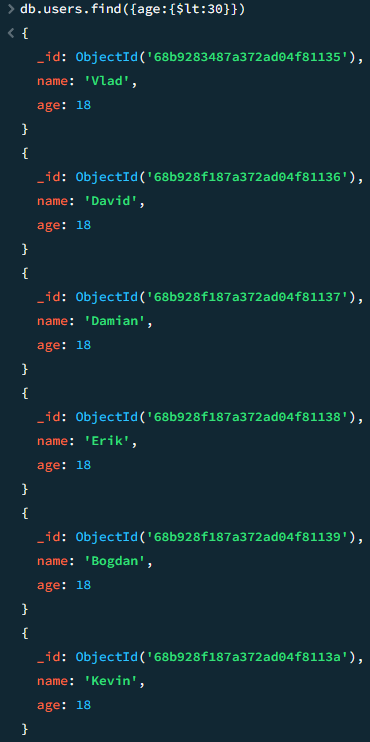 [find] – $lt, $gt, $lte, $gte, $ne, väiksem kui, suurem kui, väiksem või võrdne, suurem või võrdne, mitte võrdne